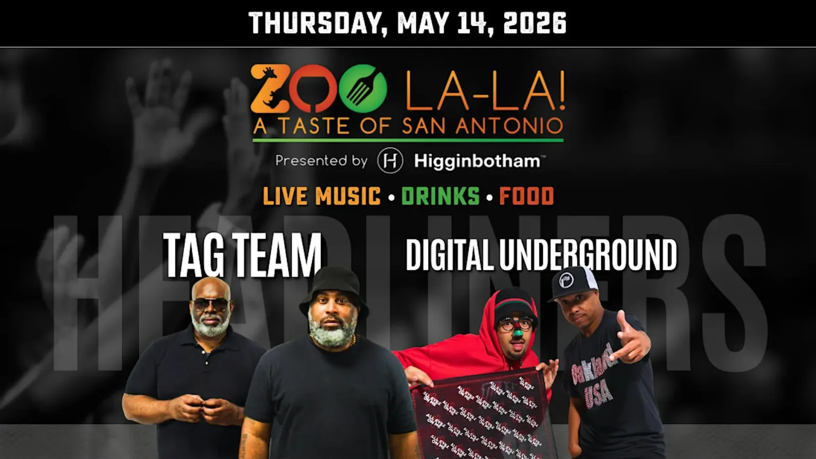 All inclusive 21+ night at San Antonio Zoo: 50+ top restaurants, beer and wine, plus Tag Team and Digital Underground! Don't miss out!
